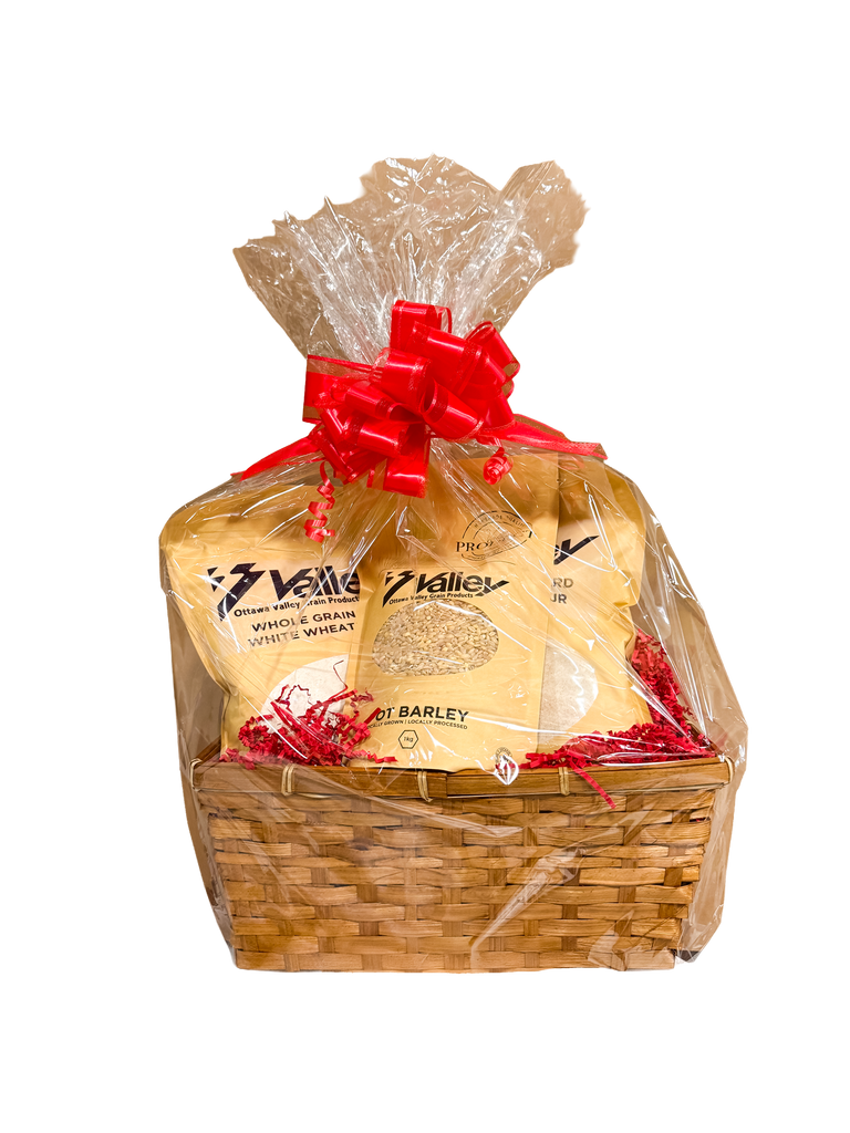 Do you have someone in your life that wants to start baking? If so, this basket will get them off to a good start. With 2 bags of our most popular flour and 1 bag of Pot Barley, the options are endless. We have also added our Trucker Hat to show your Valley pride!
